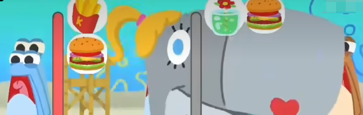 美人鱼和企鹅会一起出现,也会要更多的食物,如果将企鹅点的餐先给他,他则会带着美人鱼一起离开。龙虾不仅会点蟹黄堡还会向周围的顾客推销,看到它来了要提前多准备一些食物。珍珍如果等待时间超过一半就会暴躁的跳起来,整个摊位都震起来了,所以要先给她食物将其打发走。