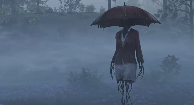 中型类人实体,头部被一支滴落黑色粘液的雨伞所取代。在猎食的时候会表现出主动攻击性,有着非常强烈的报复性,能够操控天气,招来黑雨等负面天气后,将会会让我们的战斗多了不少的不确定性。