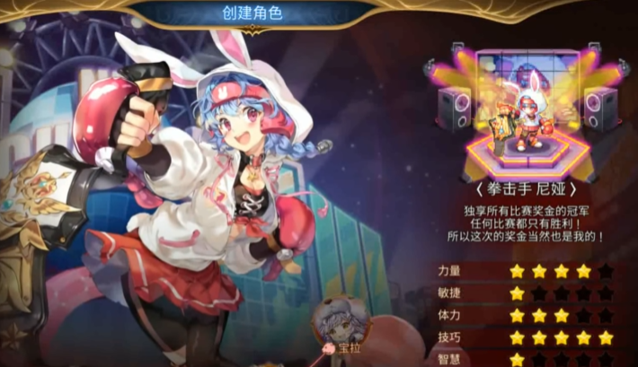 这第二个要带大家看的是近战职业拳击手妮娅,她是一个主力量属性和技巧属性的职业,在属性点上力量和技巧都是拉满的,就是说,该职业拥有相当强的近战爆发能力,而这在她的技能上也得到了充分体现。技能方面,她的技能多以高连击为主,她会贴近敌人然后进行多段连击,会对敌人造成伤害,在这个过程中如果是在敌人背后进行连击的话,那伤害还会翻倍,这效果可以让其在boss战中获得远超其他人的输出,毕竟boss战中想要打背是非常轻松的,这就是第二个拳击手的特点情况了。