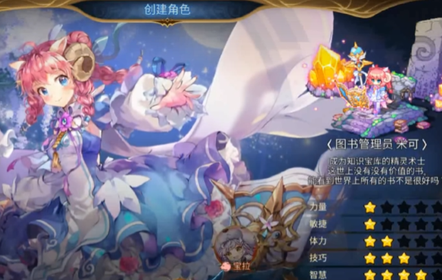 了解斗士这职业后,要带大家看的是第五个职业也是最后一个了,该职业就是图书管理员米可,她是一位拥有高智慧和精神力的职业,定位类似于奶妈,在游戏中她拥有多治疗技能,可以给队伍中的所有队员恢复生命值,这生命值可以直接恢复,也可以挂buff持续恢复,此外在恢复时还会驱散吃到恢复的单位身上的异常状态,并且给到一个抗性效果,可以说,就技能来看她是一位拥有强大功能性的治疗技能的职业了,而做为这样的职业,在后续的公会战和副本中是必不可少的。