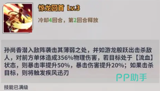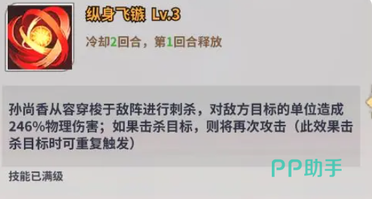 如果成功击杀掉这名目标的话,还能再次发动攻击,此效果可以连续触发,也就是在战场上全是残血的时候,尚香能帮助我们进行全场收割,大家只要使用的时机恰当,就能起到意想不到的作用。