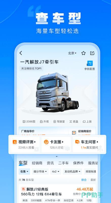 这个app集合了卡车资讯、行情导购等内容于一体,让你能随手浏览最新消息,其车型论坛有超50万实名注册用户,你可随时参与互动,平台引入了货车报价大全等服务,助力你选到心仪卡车。