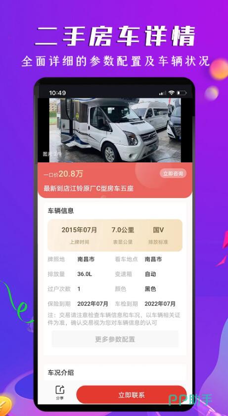 该应用为房车爱好者带来了了全面的服务,它能为驾驶者提供营地定位、行程规划等综合服务,帮助用户智能规划路线。同时,你还能把闲置的二手房车挂上去进行交易。