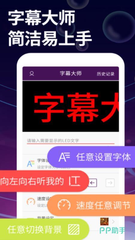 经过多个版本的迭代,如今应用的使用方法更简便,关键的功能都被罗列在了首页,一打开app就能看到,便于你去寻找。如果你只是想打造一个全新的字幕,那么把文字输入到指定的区域并点击生成按钮,即可使屏幕变成跑马灯显示屏,滚动播放你输入的文字。