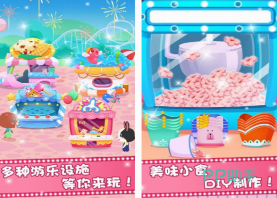 由于大家在玩娃娃机的时候,很多都是在游乐园里,所以给大家介绍这款同样比较可爱的,你在里面可以看到多种游乐设施,每个都能免费畅玩,比如打地鼠或者是利用diy制作美味小食品。可爱卡通的画面让很多的玩家都仿佛置身于童话的世界,尤其是儿童在体验这种游戏时,既能感受快乐,还可锻炼大脑,收银工作要算清楚。