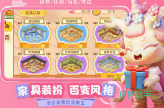 在这款特别治愈的游戏中,主要的玩法就是装扮经营也将拥有温馨的乐园,既可对里边的店员进行养成,还有丰富的互动社交模式,在招募了各种特色的职员以后,可使自己所经营的梦想乐园变得特别热闹。想要获得金牌店员的情况下也需要满足诸多的条件,在家具装扮系统中也有很多的装饰品,可选择喜欢的风格。