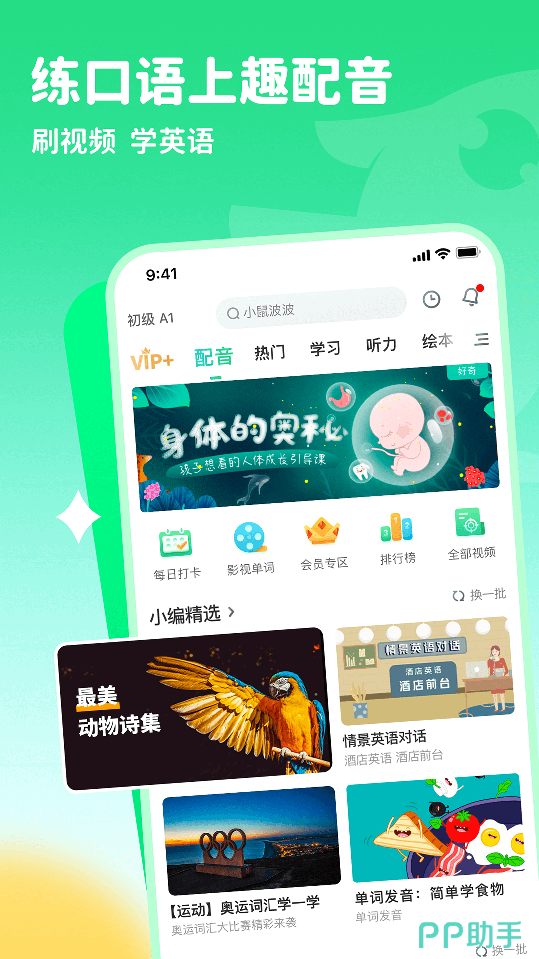 他能够根据大家的兴趣来智能化的推荐适合学习内容,如果大家对配音有兴趣,软件就会多给大家安排相关的视频或教材内容,让大家在日常中进行耳濡目染的体验,获得更多英语接触和学习的机会。并且软件中对一些英语的发音是相当准确的,能够了解到最标准的英语表达形式。