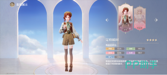这一套则是有着探险家风味的一套衣服,头上的贝雷帽与棕红色的卷发适配度刚刚好,而红棕色的小马甲与内里灰绿色的花袖小衬衫相得益彰,胸前挂着的小相机是一路收集风景的重要道具,而小巧且精致的小热裤让前进的路上变得更为方便,过膝的毛线长袜与褐色马丁靴的搭配,让这一身显得更为干练了许多。