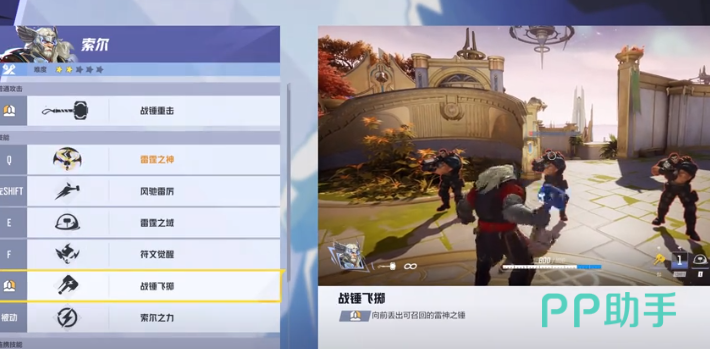 雷神索尔旋转雷神之锤可以直接跳跃到目标的方向,而如果改变方向,那么此时就会造成更高的伤害。可以给索尔带来100点的额外生命值。