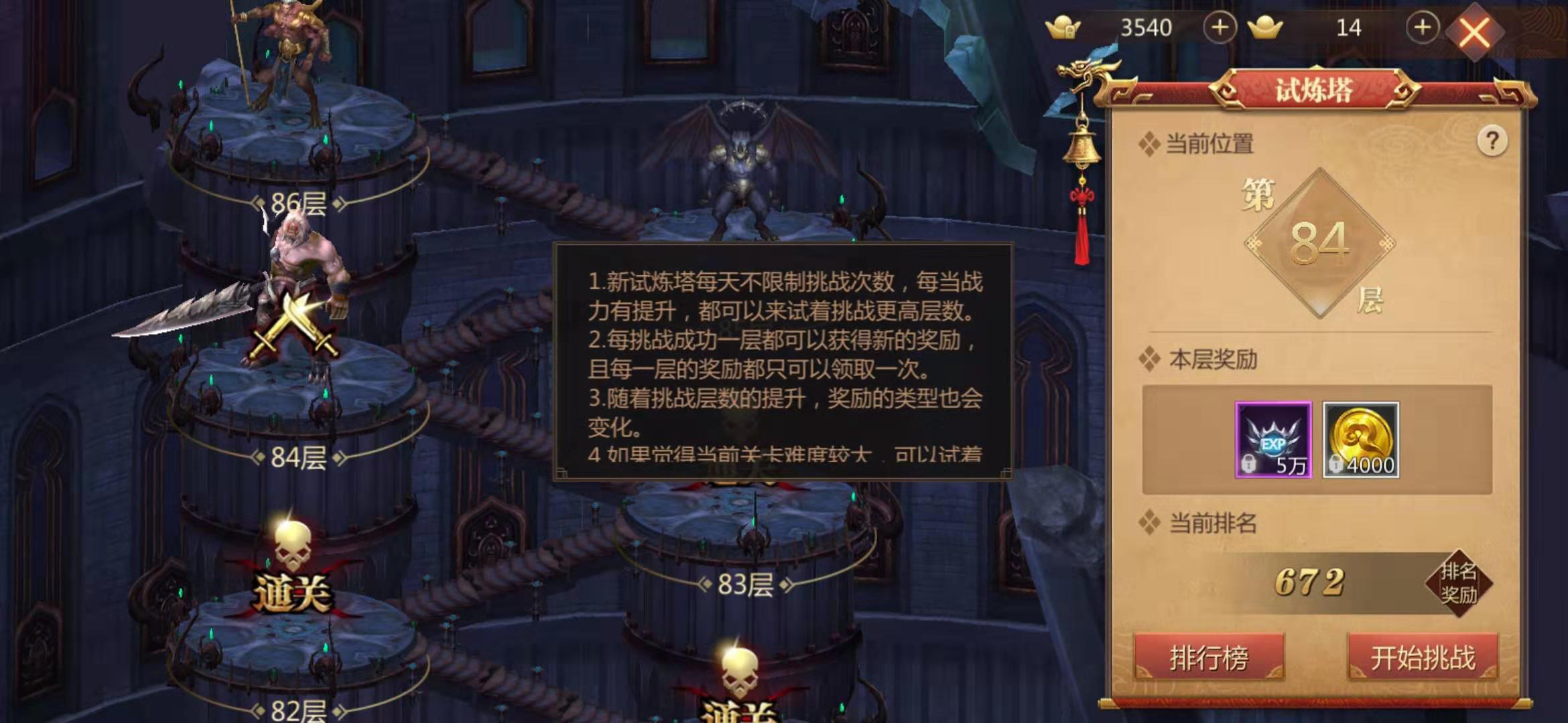 现在大家知道手游传奇世界3d怎么过100层了吧,只有提高生存能力才是新试练塔闯关的关键所在。