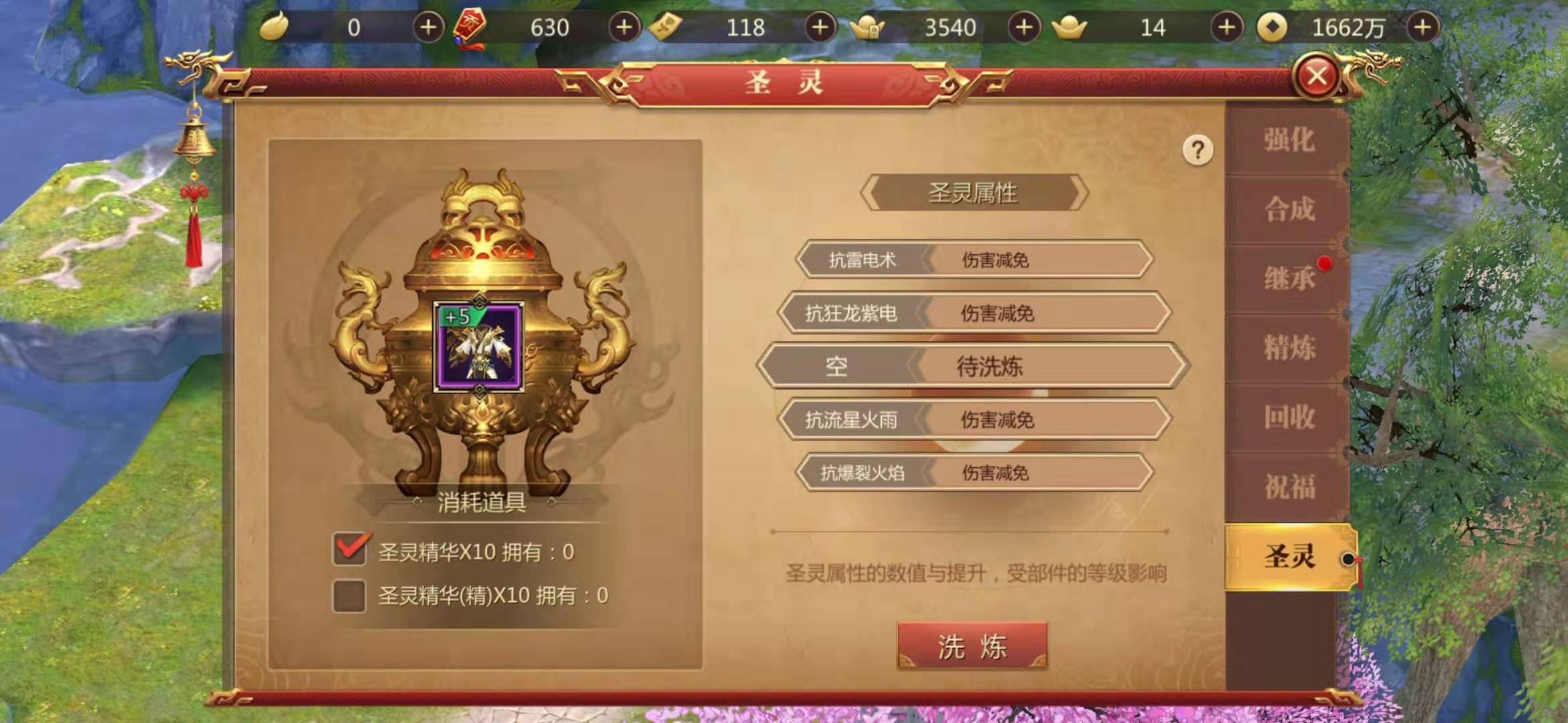 最后是对衣服进行圣灵强化,目前只有武器和衣服才能进行圣灵强化,衣服的强化效果是降低受到伤害的百分比,和获得抵抗高级技能伤害的抵抗增幅。经过这一番整合,相信角色的生存能力得到了很大的提高,再次挑战第100层就如探囊取物一般简单了。