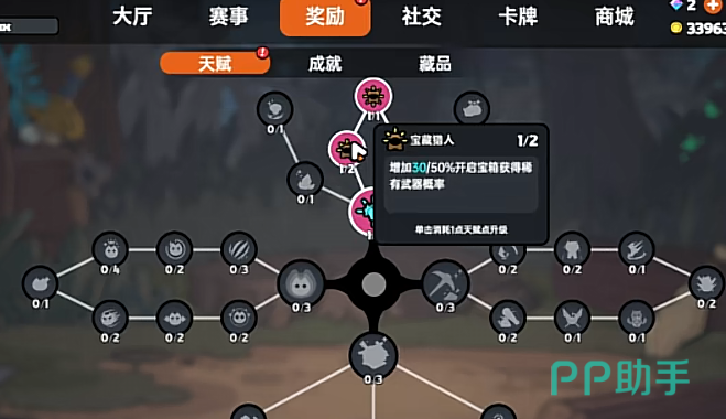 新手玩家优先点击武器相关天赋,“好事成双”和“宝藏猎人”就是不错的选择,两个特殊的效果加在一起,在使用宝石合成装备有概率获得同名的一星装备,同时增加开启宝箱获得稀有武器的概率,这些天赋能够快速提升角色的战斗力,帮助玩家更好地度过新手期。