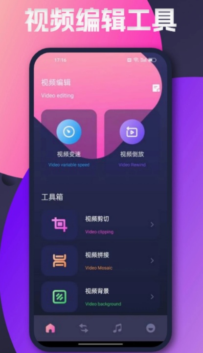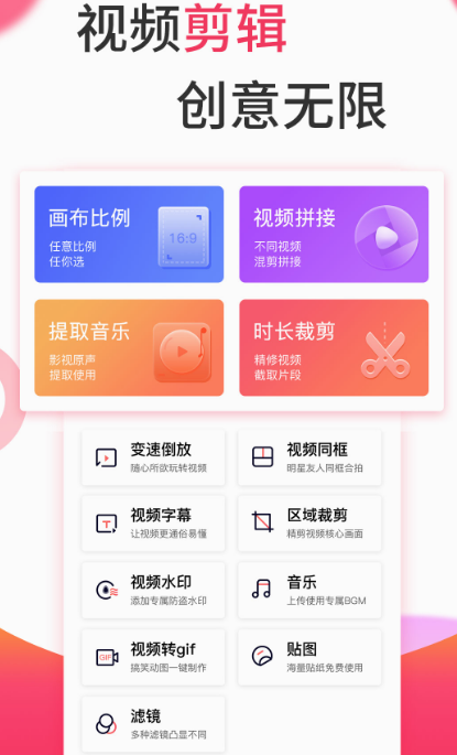 大家除了可利用这款应用来对手机的视频进行编辑,让普通的内容都成为大片,其实它还有诸多的功能,比如添加声音或者是编辑,毕竟大家在看视频时添加音乐的已经没有办法满足大家的需求,特别喜欢那些搭配上好听音乐素材的,这款可让你利用编辑功能制作精美的视频,更能分享到自己的微信朋友圈里,简单的界面以及操作方式让你爱不释手。