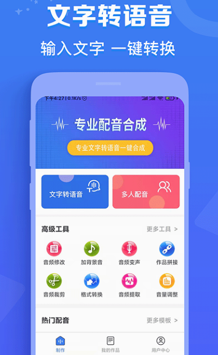 在这款非常受大家喜欢又实用的应用中,你可利用里面的文字转语音功能合成自己想要的音频内容,同时还具有音频拼接以及格式转换等强大的合成技术,让你每次在体验的时候都能达到非常优质的效果。海量的配音模板,也可让每个用户自由挑选诸多高级的工具以及多人配音等,体验专业配音员他们每天的生活。