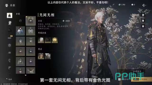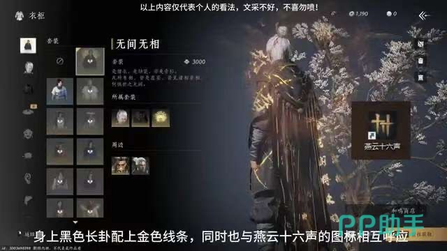 这一套时装叫做无见无相,主要的衣料是一件长衫,长度从肩膀一直到小腿处,给身形高大的男性角色穿,视觉效果是非常棒的。而且衣服上会不规则地点缀一些金色流苏,黑色和金色的搭配,既不会觉得突兀,又可以在浓浓的侠客风格中窥见一丝华丽,装扮粗中有细,小编觉得这套是很耐看的。