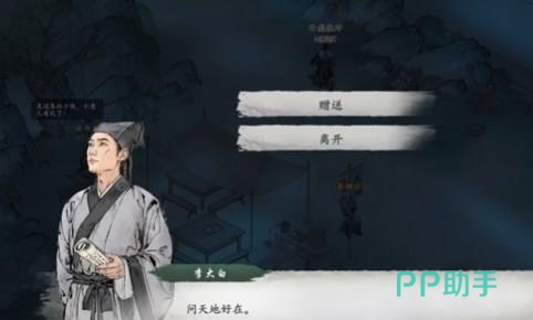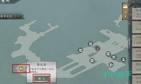 所有的开始,都来自江湖上神秘NPC——李大白。这名表面上普通的江湖人物,虽然隐藏在一个不显眼的地方,但却握有开启这段不同寻常旅程的关键。要打开“代码疑云”,必须先从地图上找出李大白所在的具体地点。还好游戏贴心的给大家标出传送点,点开传送点就可以很容易到达。第一次见到李大白时,没有马上和你谈“代码”这个秘密,而是表现得有点冷漠。这个时候就有必要送礼来增加其好感度了。