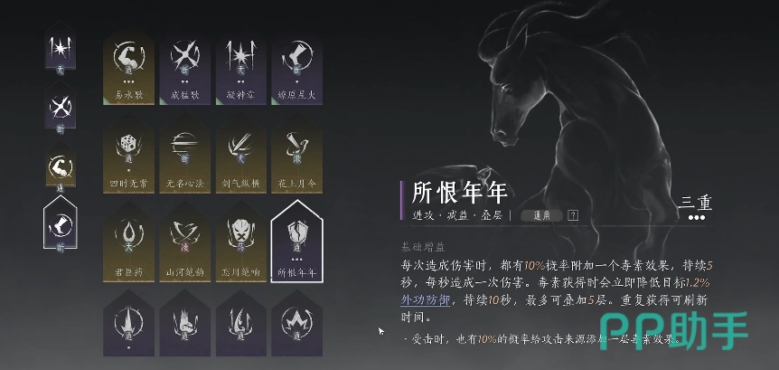 武学系统当中属性是武学的核心,它们决定了技能的基础伤害和效果,在游戏中,常见的武学属性可以分为三类,万象、脉流和慧濑。万象属性通常与剑类武器相关联,它代表着攻击的广度和范围,脉流属性则多见于刀类武器,它强调的是连续的攻击节奏和流畅度,而慧濑属性似乎与扇子这类轻便武器更为契合,它可能关联着某种特殊效果或控制能力。
