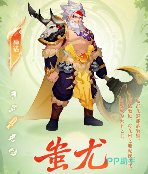 蚩尤作为常见又熟悉的神话人物,在游戏中有极其重要的作用,定位高爆率物理攻击以及暴击免伤,此远古神话角色简直就是王者的存在,物理攻击属性相当高,物理防御技能也很不错,尤其是斧力狂斩,能快速攻击敌方两个目标,对其造成高额伤害,当达到64级以上,目标数量可直接加1。