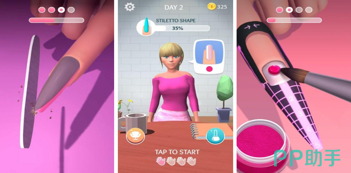 在这款女性向装扮类作品中大家会拥有属于自己的美甲小屋,在美甲小屋中要尝试接待顾客并为其打造特殊的美甲,各种与美甲和美妆相关的道具更让广大女生玩家大开眼界,你也可以在琳琅满目的指甲油中选择自己喜欢的进行打扮,沉浸感十足的美甲过程也会大大提升屏幕前女生玩家的审美能力哟。