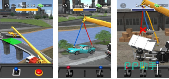 吊车技术哪家强是款比较有新意的3D画面第三视角驾驶游戏,在本作中你将化身大吊车的驾驶员体验吊东西的快感,不仅可以建造桥梁或者各种建筑物,也可以吊汽车或者一些钢材完成任务,本作具备着写实精致的美术以及欢快的游戏氛围,一目了然的操作按键能让大家快速了解吊车的驾驶流程。