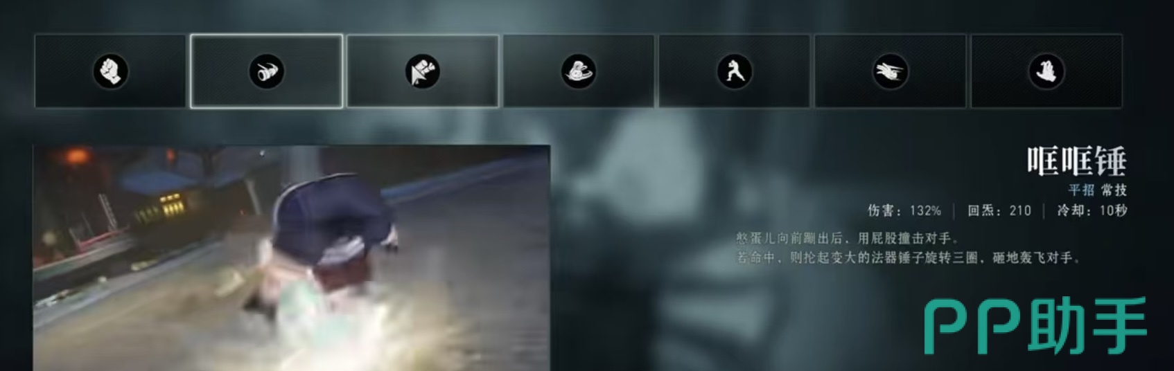 这个角色外形方面非常的可爱,并且设计的技能的名字,也是极其幽默,滚滚拳作为,他的普通攻击,可以连续性,进攻敌人三次,没有任何章法,之后还可以掏出锤子这个法器,来击飞对手,这个角色的攻击能力虽然看上去比较弱,但是是释放的效果而其他角色出名的武功,是一样的,他的第一个技能是哐哐锤,角色详情跳跃时,可以利用自己的屁股,来去撞击对手。