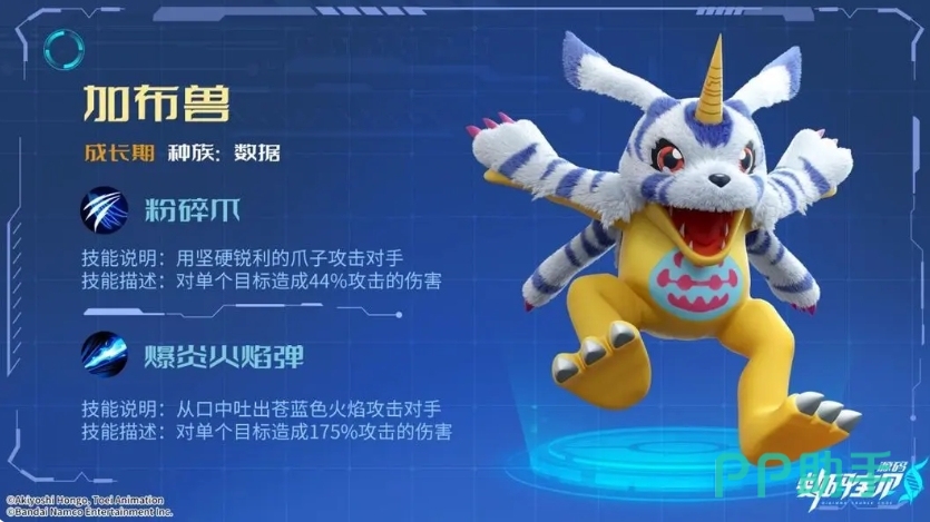 当这股苍蓝之焰击中目标时,不仅会造成高达175%攻击力的巨额伤害,从其成长的三个阶段深入探讨中,其实这个火焰输出是一直伴随他的能力,且带来的灼热状态也是一个持续输出的常见效果,成长期当中可以说是加布兽的起点,此时的技能输出点数不能跟其他同成长期的数码兽分出高低,但是后期有了属性克制加成机以及进化就不一样了。