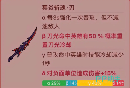 冥炎斩魂.刃:每三秒就会强化一次普攻,如果普攻命中英雄,则技能冷却时间减少1秒;而刀光命中英雄时,有一大半的概率重置刀光冷却时间。