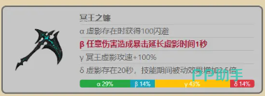 冥王镰刀:冥王虚影状态下,攻速提升到一百;每次暴击的时候都是可以延长变身时间;在释放技能的时候,会额外增加50点移速和100点闪避。