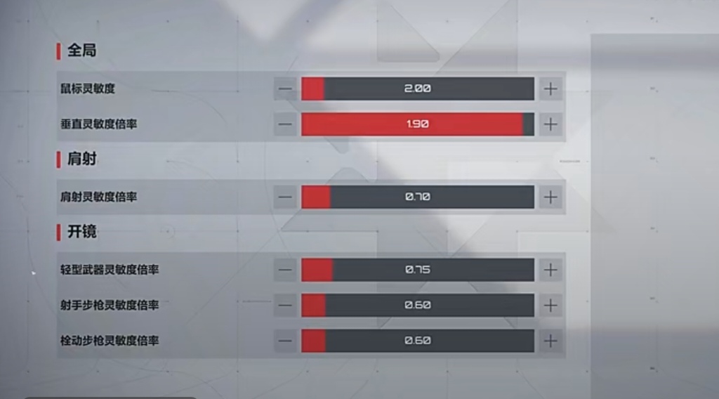 设置的上方找到灵敏度这个选项点进去,就能直接去手动调整了,调整之前大家还要了解灵敏的算法,灵敏度算法需要用乘法把鼠标灵敏度乘以轻型武器、射手步枪以及栓动步枪等武器的灵敏度倍率,比如说把鼠标灵敏度调整到了20,那就灵敏度就是用20乘以下面的开镜倍率来计算。