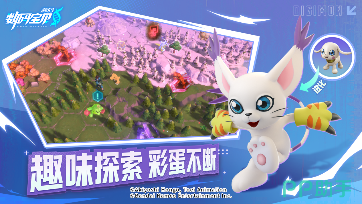探索地图在这次考试中非常引人注目,解除体力的限制,让玩家在地图中自由驰骋。探险过程中不但可以得到绝大部分养成资源,还可以进行钓鱼,收集等休闲游戏,就连躲在墙角的各色彩蛋也都等待着细心玩家们去挖掘。你或许会在某个废墟之中找到一颗珍稀的数码蛋,或者在森林的深处意外遇到一只隐藏的数码宝贝。