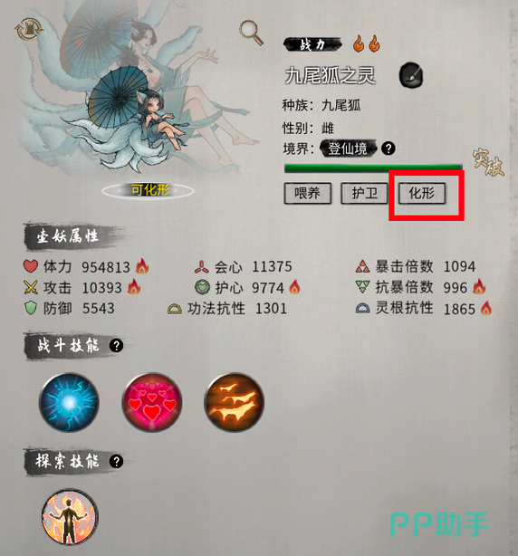 先来说说如何对这些妖兽进行快速的收集,其实在开篇的灵器选择当中,建议玩家们先去选择炼妖瓶这个法宝可以大大提升与不同妖兽NPC的互动玩法,通过收腰瓶能够快速收集到千种妖物,而要想让妖物化成人形,也需要加以辨别。目前在游戏的妖兽界面如果出现了化形二字,也就是小编在途中框出的这个按键,那么妖物才能快速化形。