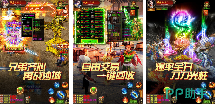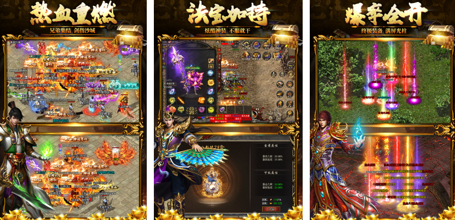 在地图与怪物设计上精益求精,从主城的一草一木到怪物形态,都力求最大程度重现经典,为玩家带来真正的热血传奇体验。玩法上,游戏以提升等级、爆装备等元素为核心,同时融入了怪物攻打城池、团战等多种精彩元素。更支持千人同屏战斗,让玩家在爆装、刷怪掉宝的紧张刺激中获得快感。