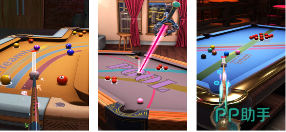 这款全3D画面的台球竞技类游戏会让大家见识到体育竞技游戏的魅力,斯诺克和8球等超多打台球的竞技系统让台球高手乐在其中,这款3D打台球的游戏不仅可以锻炼大家的耐心,甚至能将大家的逻辑思维能力提升到一个新的高度,游戏具备着不俗的物理引擎为玩家还原了很真实的打台球体验,精美的3D画面效果也给人沉浸式打台球的感觉。