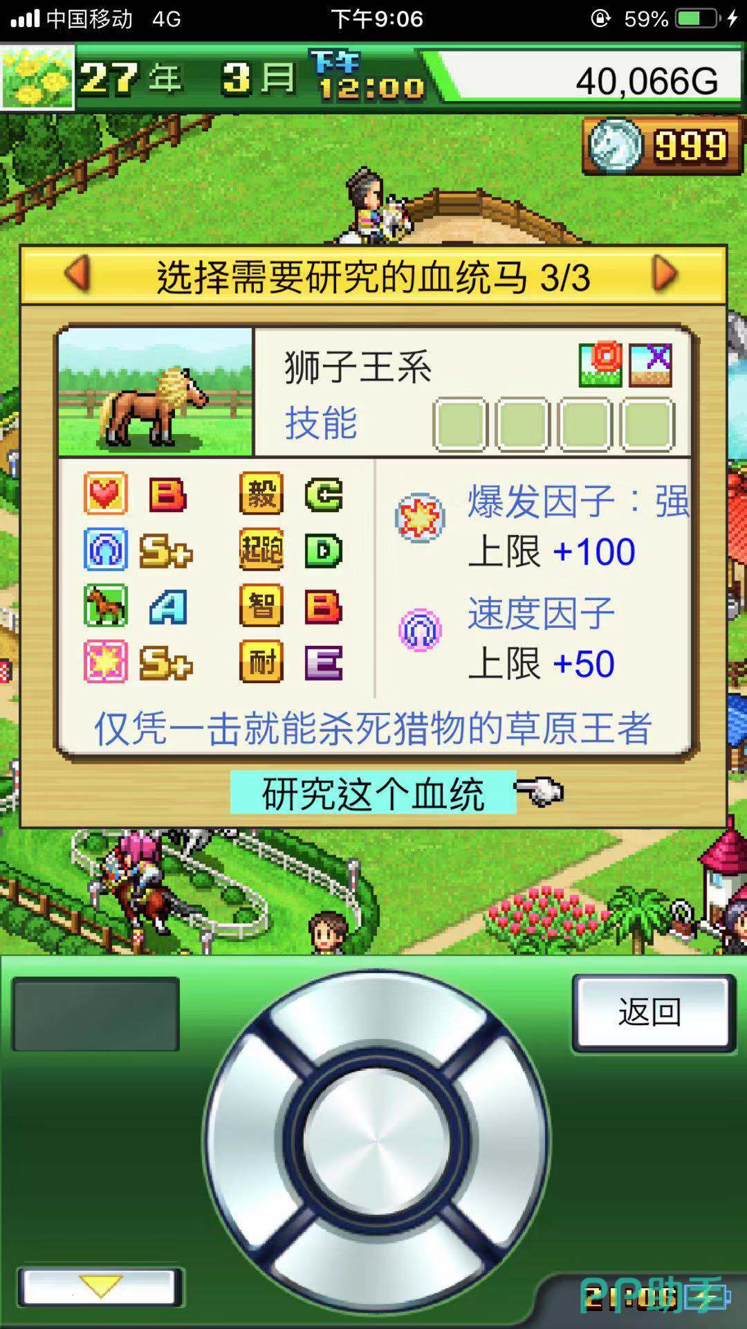3.随着游客对我们马场的评分升高会陆陆续续的解锁各种道具和技能给我们,最后评分满了就会赠送我们一本血统研究书,使用血统研究书进行研究就可以获得狮子系了。