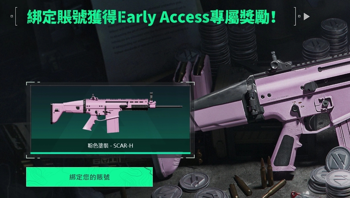 喜欢SCAR的玩家还可以在开服时通过游戏内的账号绑定来获取另一款粉色涂装皮肤,相比鳄鱼系列皮肤粉色系列的观感变化会更大一些,值得一提的是这些奖励的领取时间有限,只持续一个月,需要在明年1月3日之前完成对应任务才能顺利领取。