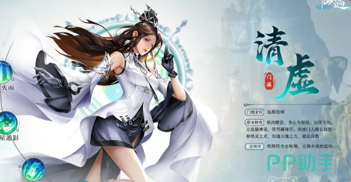 第1个给大家推荐的是清虚。清虚在游戏内的定位是远程法师,主要的战斗方式是召唤符咒或者召唤灵术。在战斗中,清虚将会不断的给敌人叠加debuff,如果debuff叠加到一定的层数,就会给敌方带来减速或者是沉默的效果。成长中可以分为两个流派,分别是洞穴和寂灭。洞穴主要的技能是召唤天雷,而寂灭就是召唤星辰,两个流派的伤害都很不错。