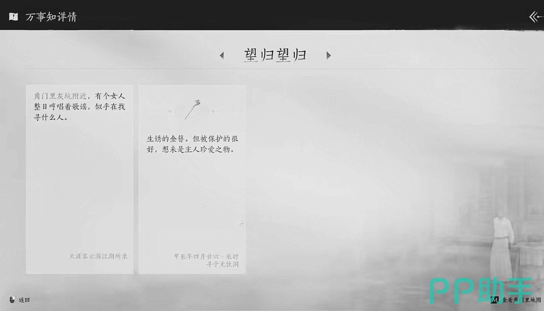 望归望归的探索流程很简单,唯一复杂的就是金簪子的获取,所以小编下面也会告诉大家怎么得到这个必需品,金簪是在主线剧情里面获取的一个东西,所以我们要先把主线剧情推动到无颜这个主题,要想打败无颜我们需要从防御和战斗下手,火属性的攻击基本伤不了她要用其他的属性,无颜的伤害很高,我们着重做防御的装备,能躲还是躲哈不要站着给人打,在她攻击的间隙我们发动攻击,把她耗没。