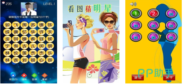 五个很有魅力的猜谜解谜类闯关手游都已经介绍完了,大家了解流行的猜明星游戏下载合集情况怎么样了吧。上文中介绍的这几款能让大家猜测明星的手游神作都蛮有趣的,你也进入这些猜谜类作品中尝试挑战吧。