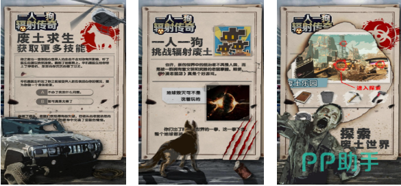 这是款加入了开放世界探索以及文字互动主题的身材手游,这款作品中塑造的末日世界人类早已所剩无几,满地都是变异的僵尸和充满辐射的恐怖区域,能陪伴你一起冒险的只有一条忠诚的狗狗,逼真的末日环境营造结合丰富的故事情节都为本作润色不少,你也进入本作带着自己的宠物在辐射地图上生存下去吧。