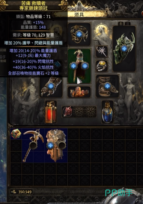 2、首饰。专家锁链头冠,带两个抗性,与其他装备搭配就好。