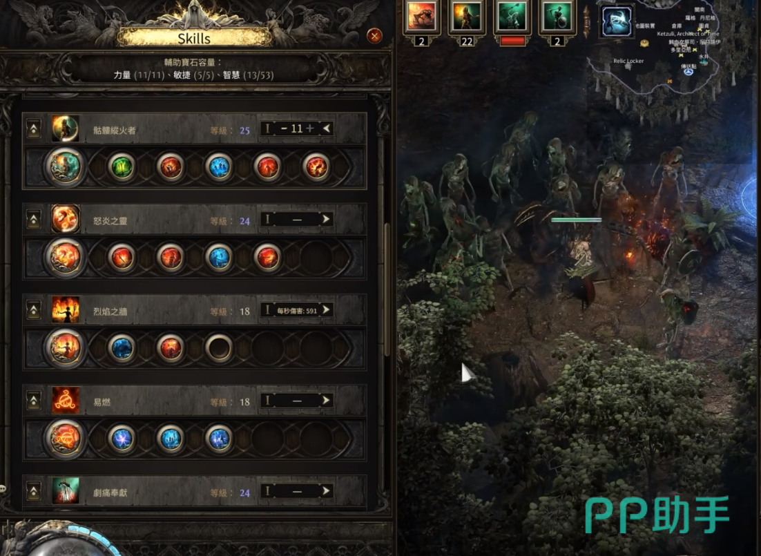 骷髅纵火者+散射+武术节奏+火焰灌注+牺牲