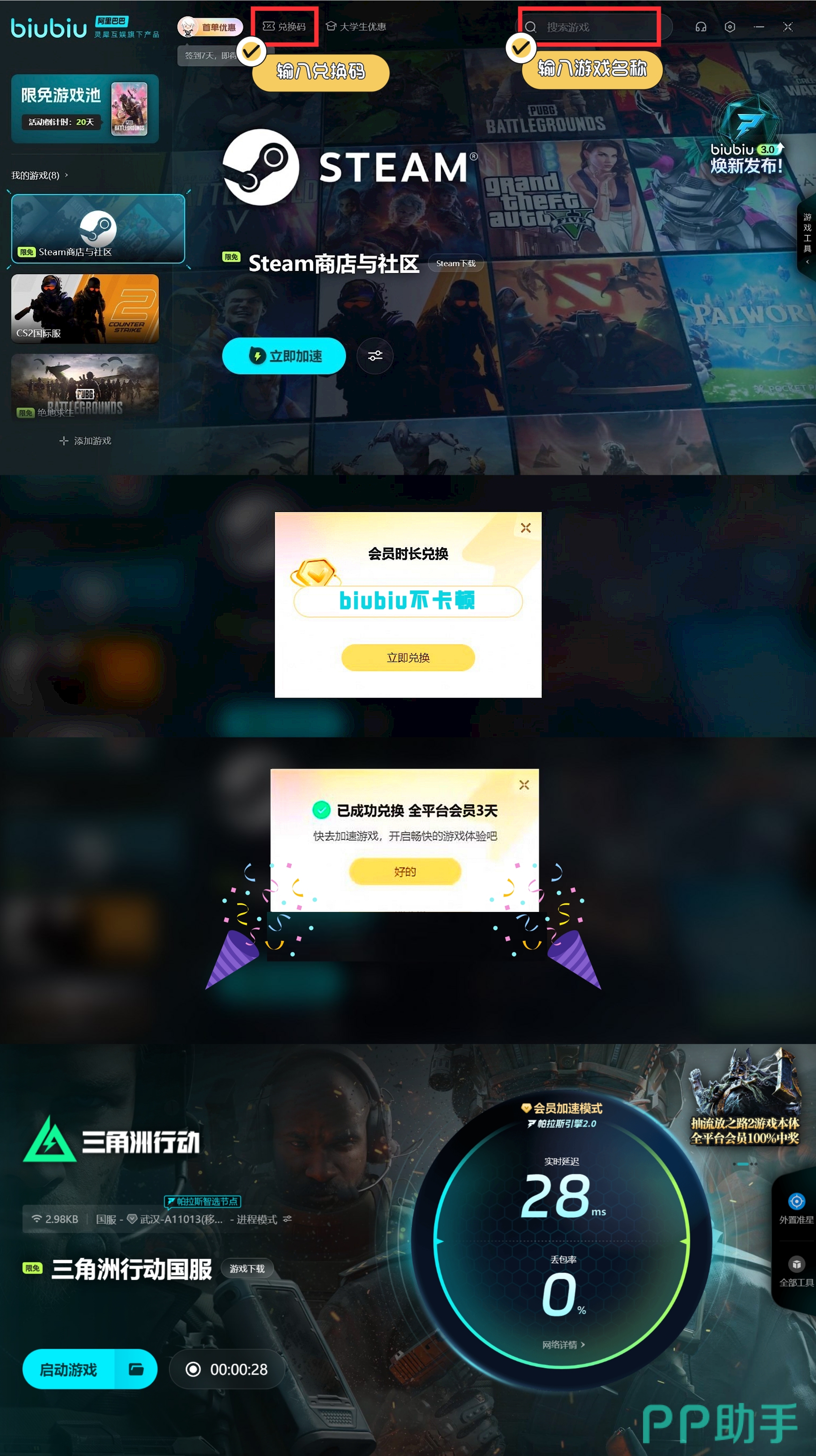 接着就是枪械方面的改造,玩家在进入游戏以后是可以对使用的枪械进行全方面地改造,包括枪械的配件以及使用的武器外观都能进行全面改造,从而让打造属于自己的专属枪支,当然在正式对决的话,没有网络的话很容易卡顿,可以利用biubiu来提高网速,并且新人在注册后便获3小时免费加速,新老用户均可使用兑换码【biubiu不卡顿】可获3天免费的使用权哦!
