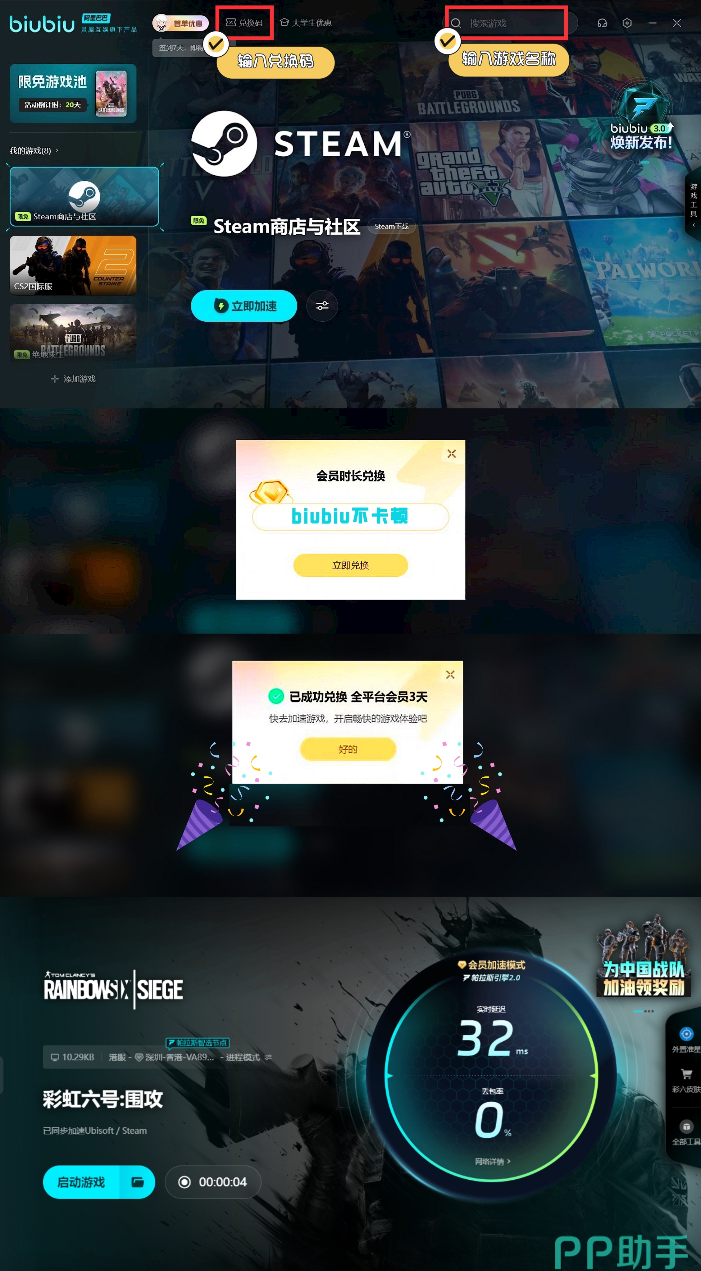 这名挪威成员是一位极具进攻性的角色,拥有强大的破坏能力。独特技能爆破装置能够在远距离摧毁敌方的强化墙、窗等防线。与传统的爆破工具不同且具有逐步爆破的特性,提供了更高的精准度和强大的破坏力。此角色的武器选择也相当灵活,使他能够根据战局的需要执行多种战术,因此非常适合用来打破敌方的防守阵地,为团队创造突破口。当然作战的时候加速工具也不能少,上面给大家推荐的新人注册就有免费3小时的加速时长,后续通过输【biubiu不卡顿】还能获得72小时。