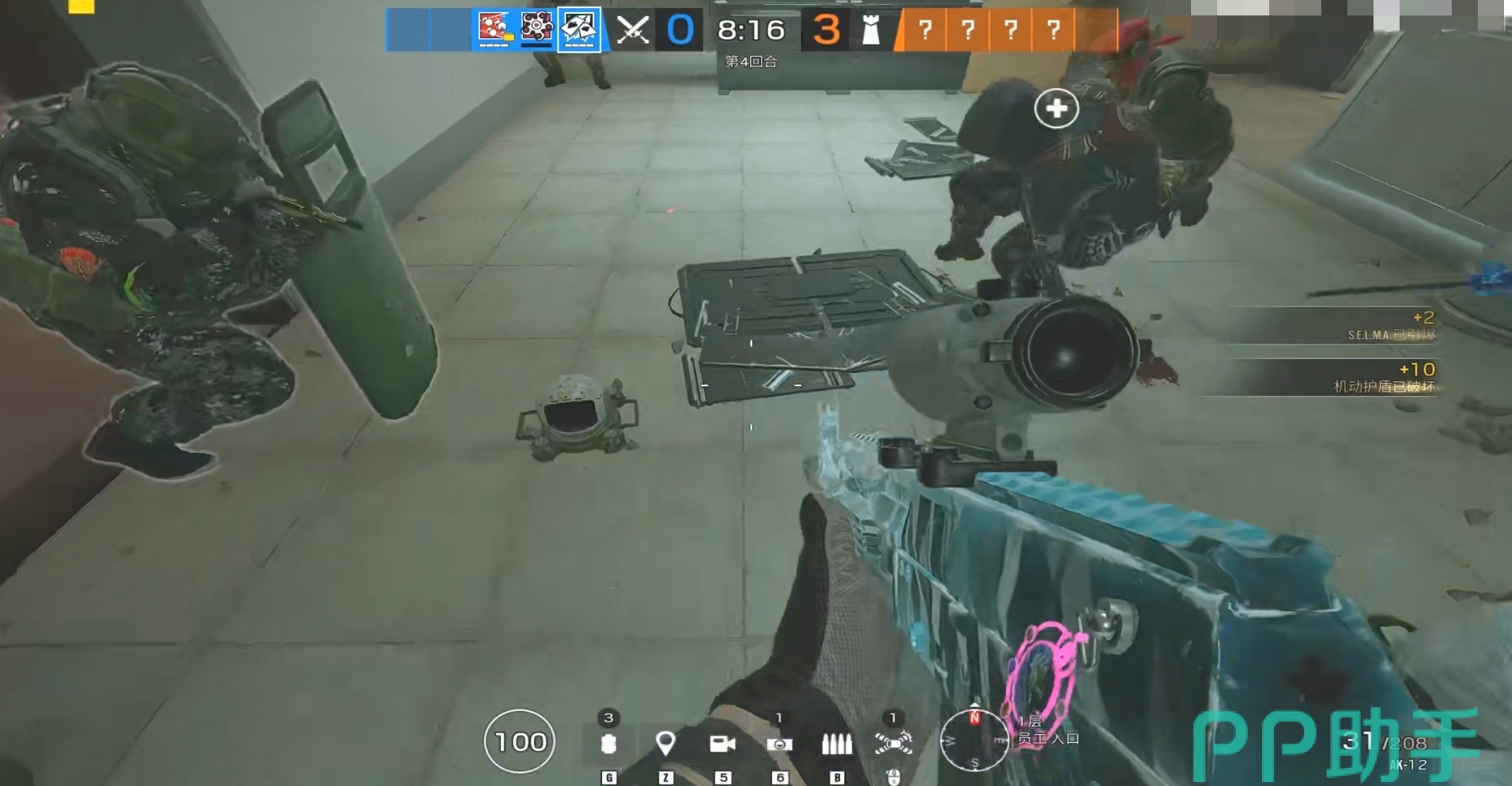 这名角色的主要任务是破坏敌方的防线,尤其是对付加固的墙壁和窗户。他的爆破弹可以在相对较远的距离内完成这些任务,这为他提供了极大的安全性,避免了近距离操作时可能遭遇的风险。在使用爆破装置时,玩家需要注意时机和目标的选择。优先摧毁那些阻碍进攻的防御设施,如加固的墙壁或障碍物,同时也要确保敌人无法迅速反击。利用他的远程爆破能力,可以为队友创造进攻通道,极大地提高整体攻势的效率。