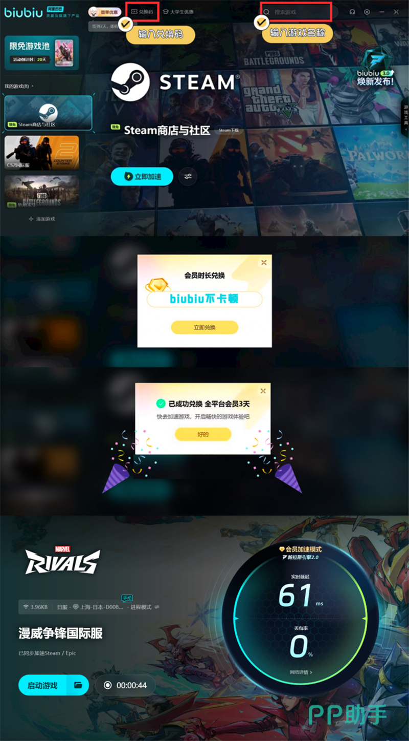 为了能够用好每一个角色,将操作优势发挥出来,biubiu是现在很重要的工具,目前biubiu福利是非常丰厚的,例如新注册号后直接得三小时会员,还有能用兑换码【biubiu不卡顿】,去直接换三天会员时间,这些都能充分打消对于性能方面的疑虑。该角色攻击方式是发射饮魂刺来伤害对手,连携技能是和洛基一起配合起来,当对敌人造成最后一击时,附近正在处于重生阶段的洛基就能原地复生,如果洛基并没有阵亡,可以额外添加生命值。按下q键后,使用冥界神罚,自身飞上高空发射灵体乌鸦。