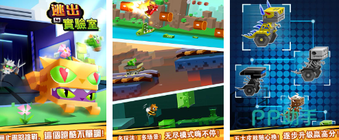 逃出实验室的过程中,跑酷玩法中的各个角色充满一些变异的元素。炮火攻击的卡通主题显然更受欢迎,操控人物以躲避为主要策略奔跑更适合玩家,青青草原主题关卡主打一个风景美丽,玩家需要避免出其不意的陷阱。在皮肤系统中, 5种不同模式的套装让玩家随时更换。角色本身就具备飞行或者加速奔跑的能力,为不少玩家节约了跑酷的时间。
