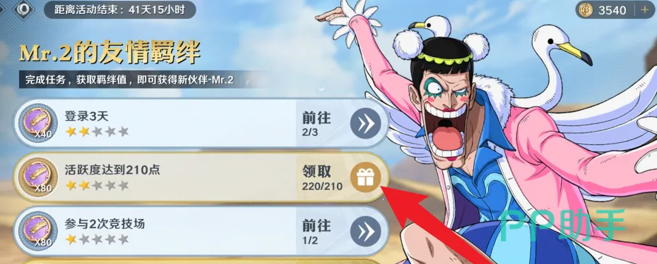 这第二个任务要求为积累活跃度,这活跃度达到210点就可以获取羁绊值和货币了,这积累进度是可以累积的,就是说每天获得一点活跃度就可以了,不用一天就刷满210点活跃,这就是第二个任务要求了。