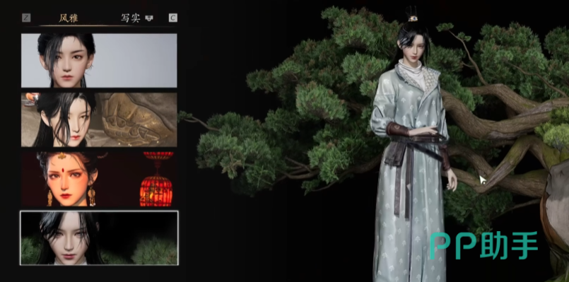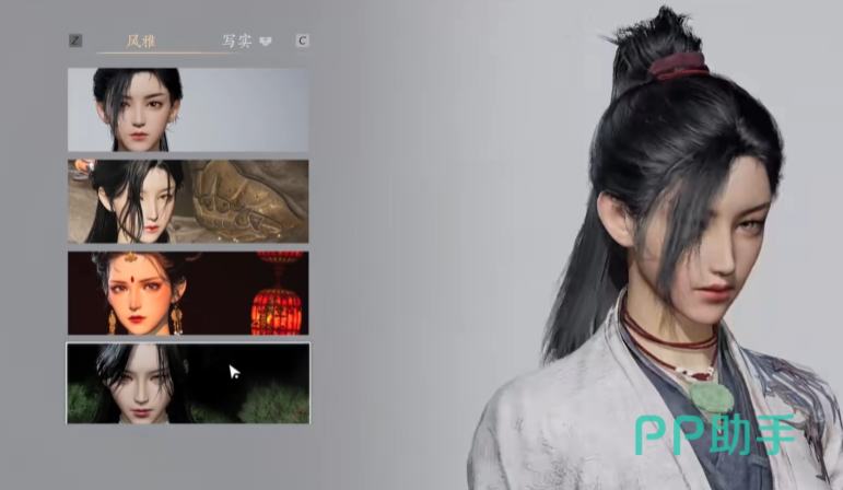 首先游戏默认就给玩家提供了“风雅”与“写实”这两种不同风格的,两种风格下也有一些现成的样式供大家挑选,可以直接使用,也可以先套用然后在这个基础上做调整。