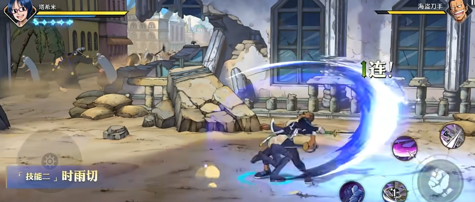 玩家可以利用强化后的二技能来压迫对方的走位,然后以剑气起手进行攻击,针对不同的敌人类型,塔希米可以选择不同的技能起手效果,例如面对黑胡子等远程消耗型角色,她可以使用一技能翻越对方的攻击后进行起手,而对于狮子、索隆等近身攻击型角色,则可以利用二技能的浮空和扫地效果来制造距离,同时她还可以利用强化后的剑气来保护自己哦。