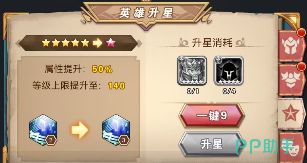 升星需要消耗的是英雄本体和对应材料,如果集齐之后,直接选择一键9星,就能够升到9星,所以这方面也不需要投入太多时间。最后是在羁绊方面,根据战神特点去搜集足够英雄就可以了,羁绊增加属性非常多,而且都是百分比提升,到后期作用非常关键。